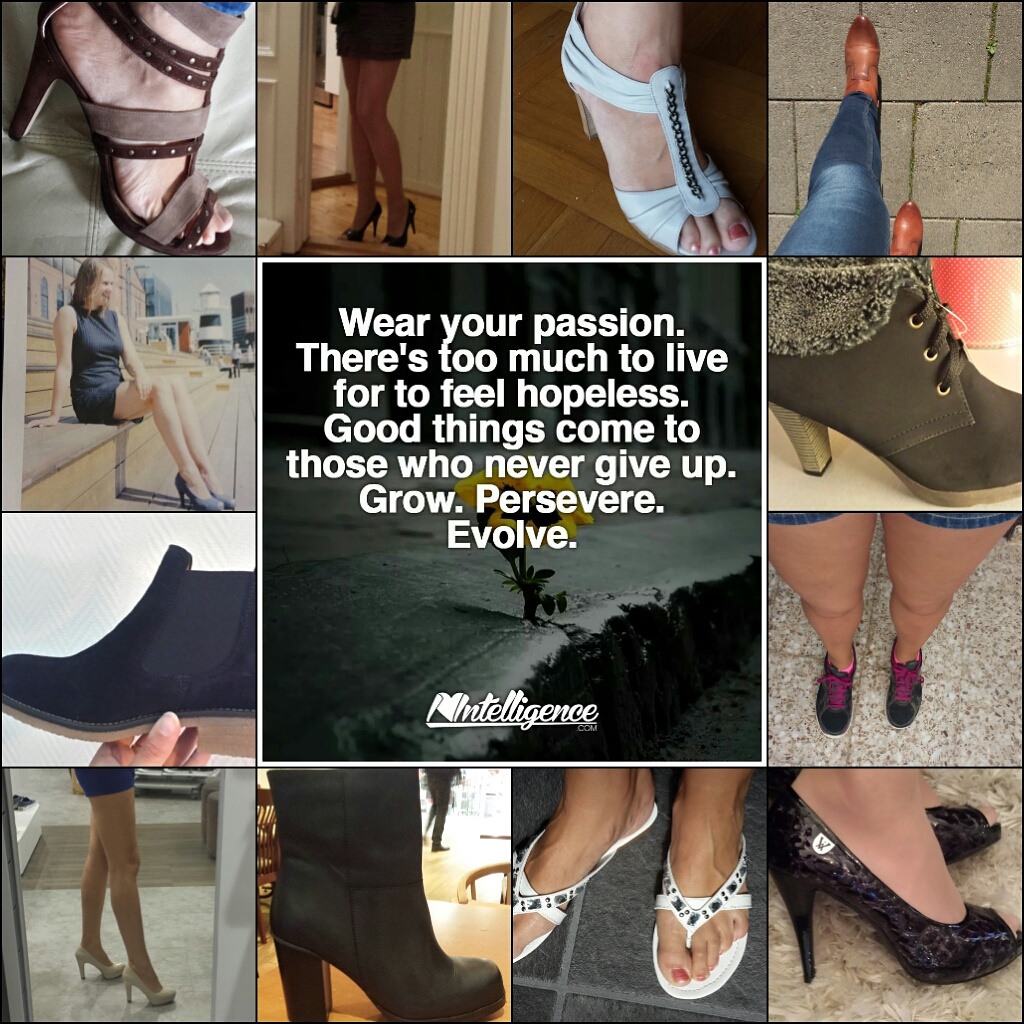 Ok jeg må bare innrømme at jeg går som ei huggærn høne i høyhælte sko, men jeg har ikke tenkt å la det stoppe meg, selv om jeg til tider ser ut som jeg er på vei rett ned i grøfta. Med knekk i knærne, rompa ut som vektstang og litt lettere bøyd fremover så brystene fungerer som airbag, om jeg skulle være så heldig å støte borti noen. Har ikke tall på hvor mange ganger jeg har måttet si unnskyld, fordi jeg helt uten å ha sett personen, som befinner seg langt under mitt synsfelt har kommet innunder en av mine hæler. Den noe vaklende stilen med støttesteg her og der, burde være til skrekk og advarsel for de fleste.