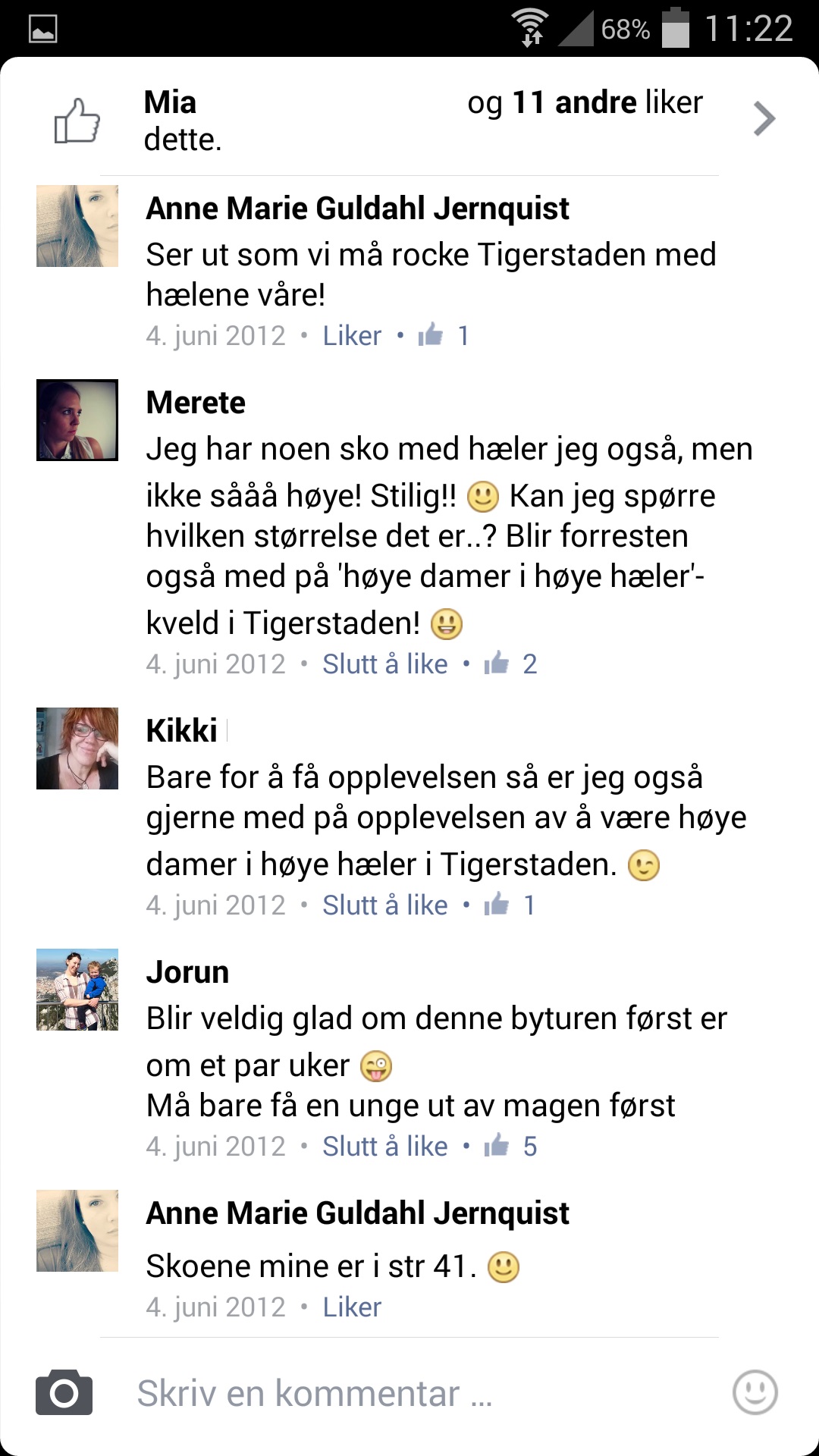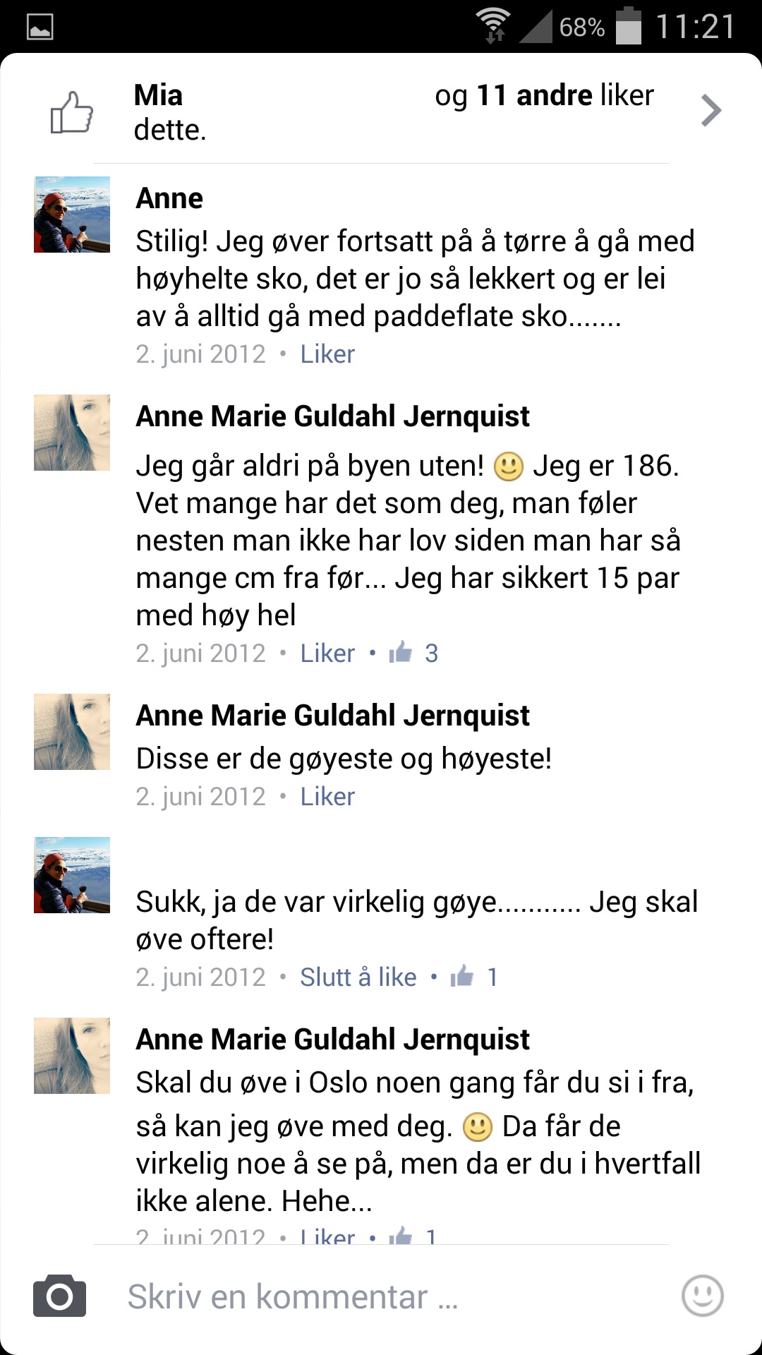 «Og du har høye hæler?» fortsetter hun i et tonefall som før jeg ble medlem av denne gruppen hadde fått meg til å krype ytterligere sammen.