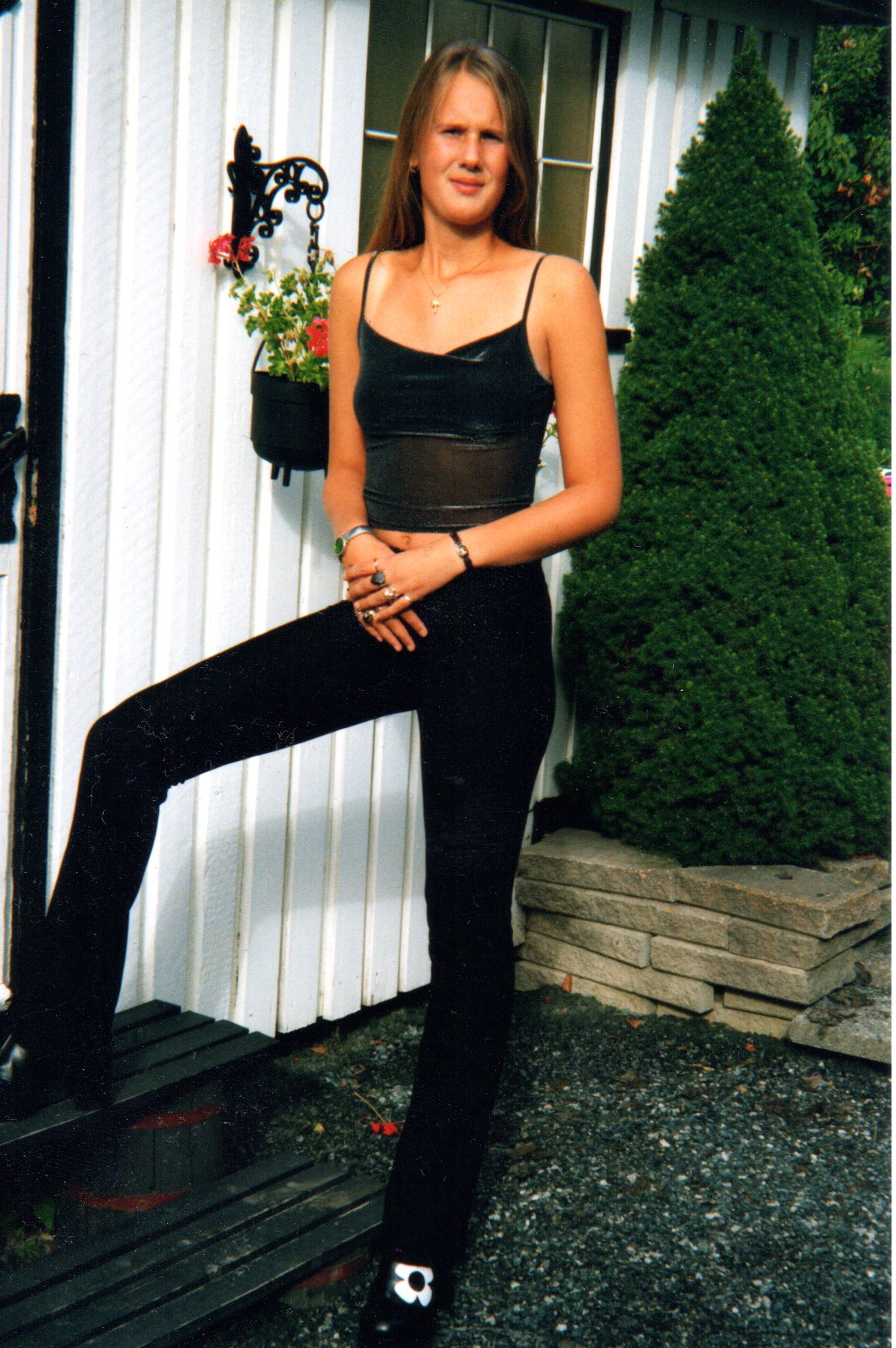Tydelig utilpass, men det er vi vel alle når vi er 15 år. Hælene er i hvertfall der, så høyden var ikke problemet.